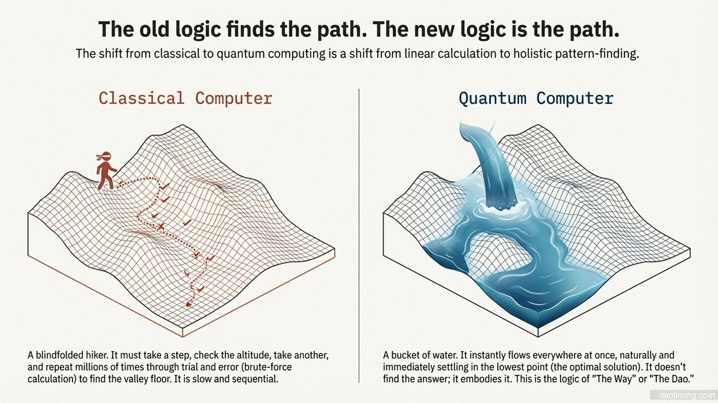 思维模式的改变会导致人类从判断到观察: 我们不再执着于真相是什么,而是接受真理是一个概率分布。容忍灰度: 人类将学会处理既是又是的状态。比如:他既爱我,又不爱我;这件事既是错的,又是对的。这种认知失调在二元逻辑里是痛苦,在量子逻辑里是常态。会寻求全局最优解。现在的计算机解决问题是穷举(试错),量子计算机是直接寻找能级最低点(全局坍缩)。人类会变得不再纠结于细节的对错,而是追求系统的整体和谐。